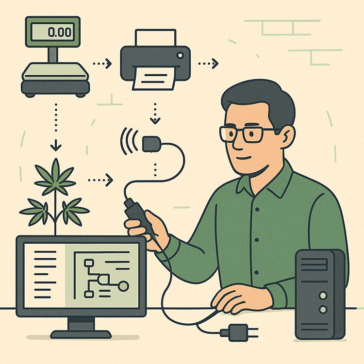 Yes. We work with your existing facility equipment including label printers, weight scales, HVAC systems, and environmental sensors. These integrations reduce manual inputs, lower the risk of errors, and speed up processes like packaging, harvesting, and compliance tracking.