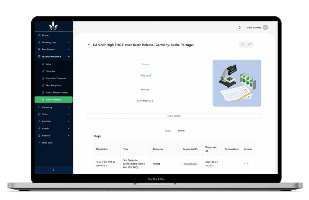 Stay audit-ready with built-in traceability, documentation, and event logging. Our software supports EU-GMP, GACP, and local regulations, making compliance effortless.