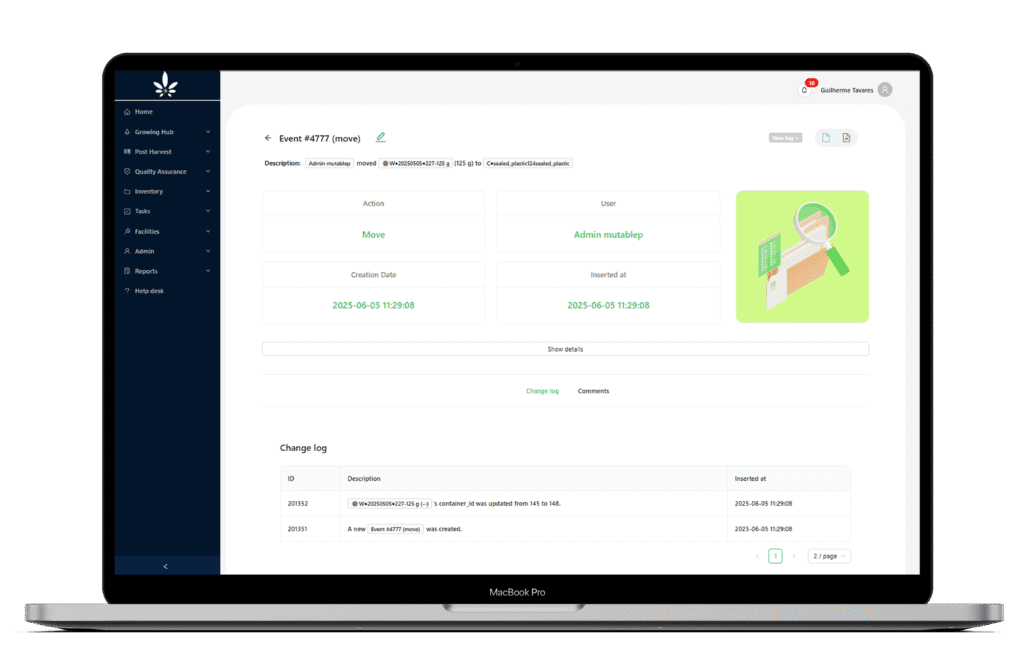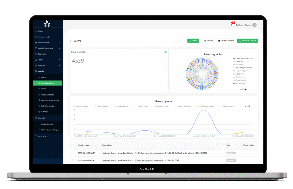 Cannabud.ai was developed with real operational audits in mind. We’ve built a system that doesn’t just log activity, it gives you context. From the user who scanned a plant to the person who approved a task, everything is traceable, verifiable, and exportable.