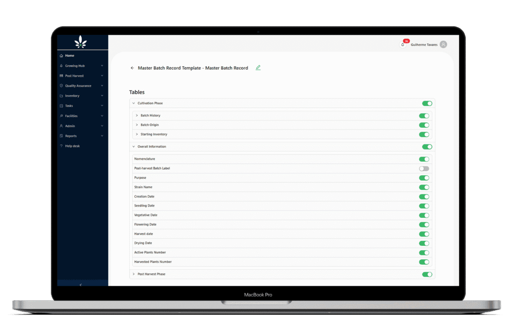 Generate tailored compliance reports using any system variable, from cultivation metrics to finished product details, including documentation for authorities like INFARMED.