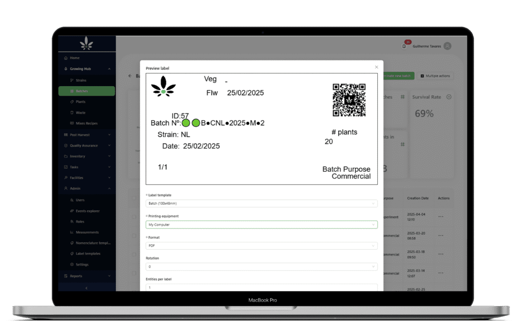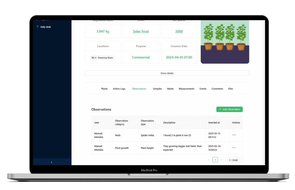 The learning curve has been steady, the more we use the system, the more we discover its features. And the support? Always fast and helpful. I particularly value how easy it is to identify every plant in a batch, whether we are working with one or a thousand. The team is humble and responsive.