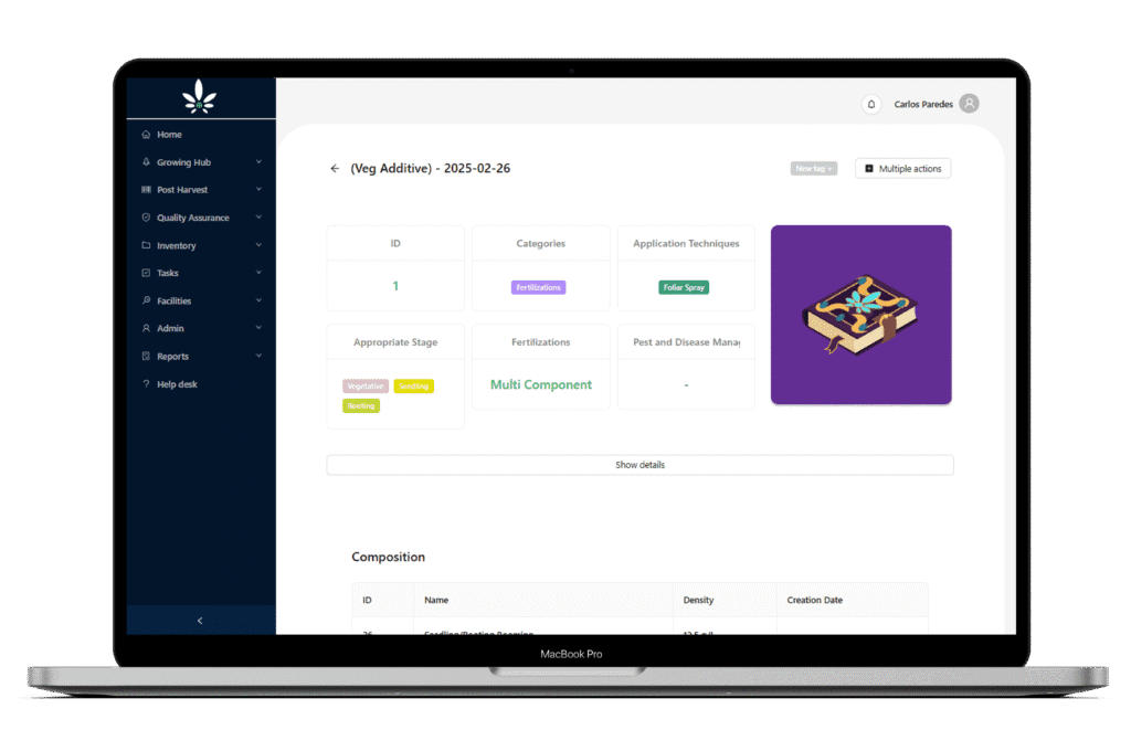 Optimize every variable. Our cannabis cultivation software empowers indoor facilities with real-time environmental monitoring, automated task management, and detailed traceability. Grow consistently, meet compliance, and reduce risks
