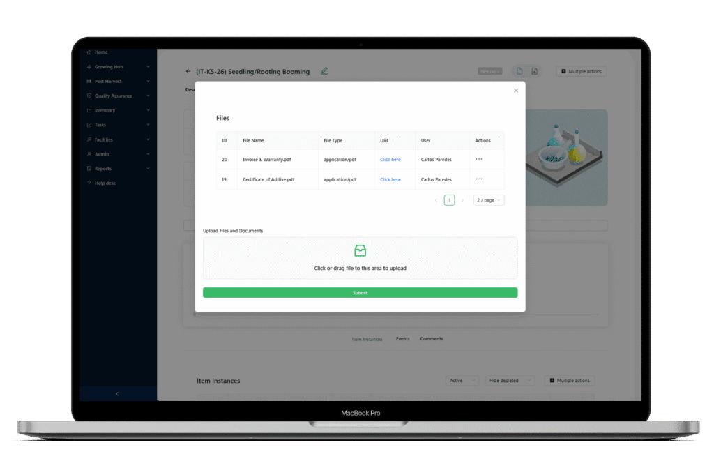 Link invoices, test results, and certifications directly to inventory items.